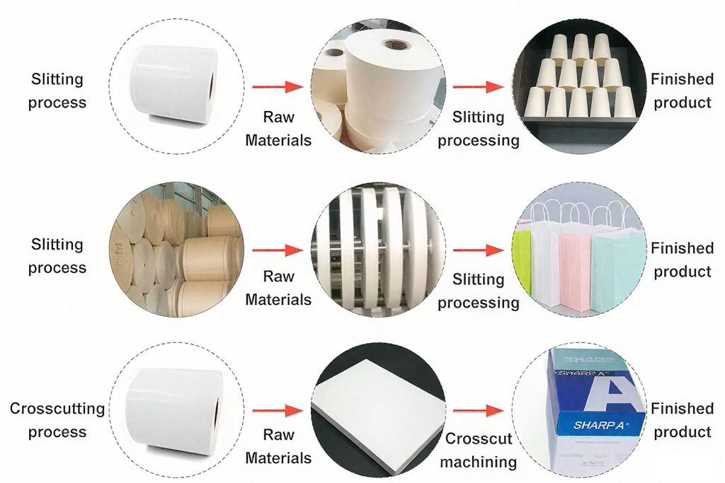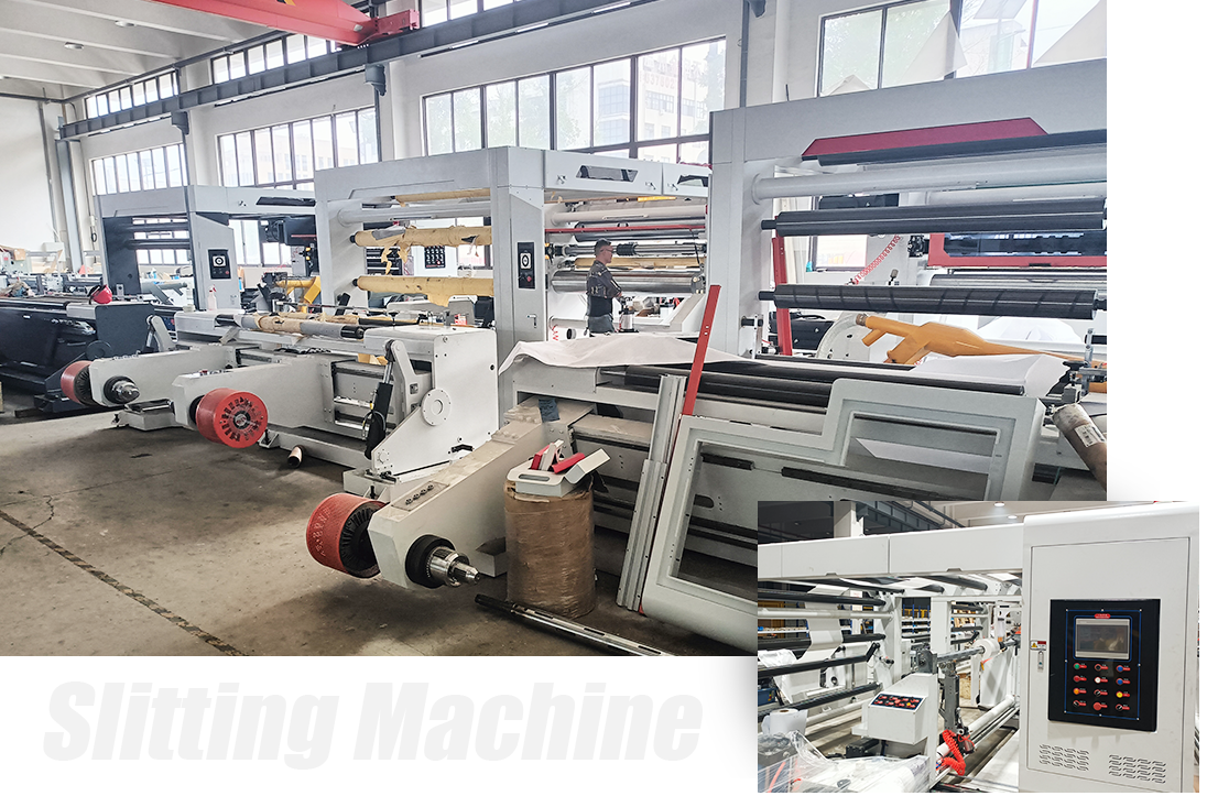 Slitting machine cuts raw materials into specified sizes. Easy to operate, high cutting efficiency. Suitable for slitting of various super-large rolls, such as 16gsm-500gsm, paper, offset paper, self-adhesive paper, coated paper, white cardboard, aluminum foil, PVC, Bopp, OPP, PET, plastic film, kraft paper, thermal paper, non-woven fabric, PP, PET, mica tape, film, rubber strip, transparent tape and other roll packaging materials slitting + rewinding, etc. It is widely used in production and processing in various industries.